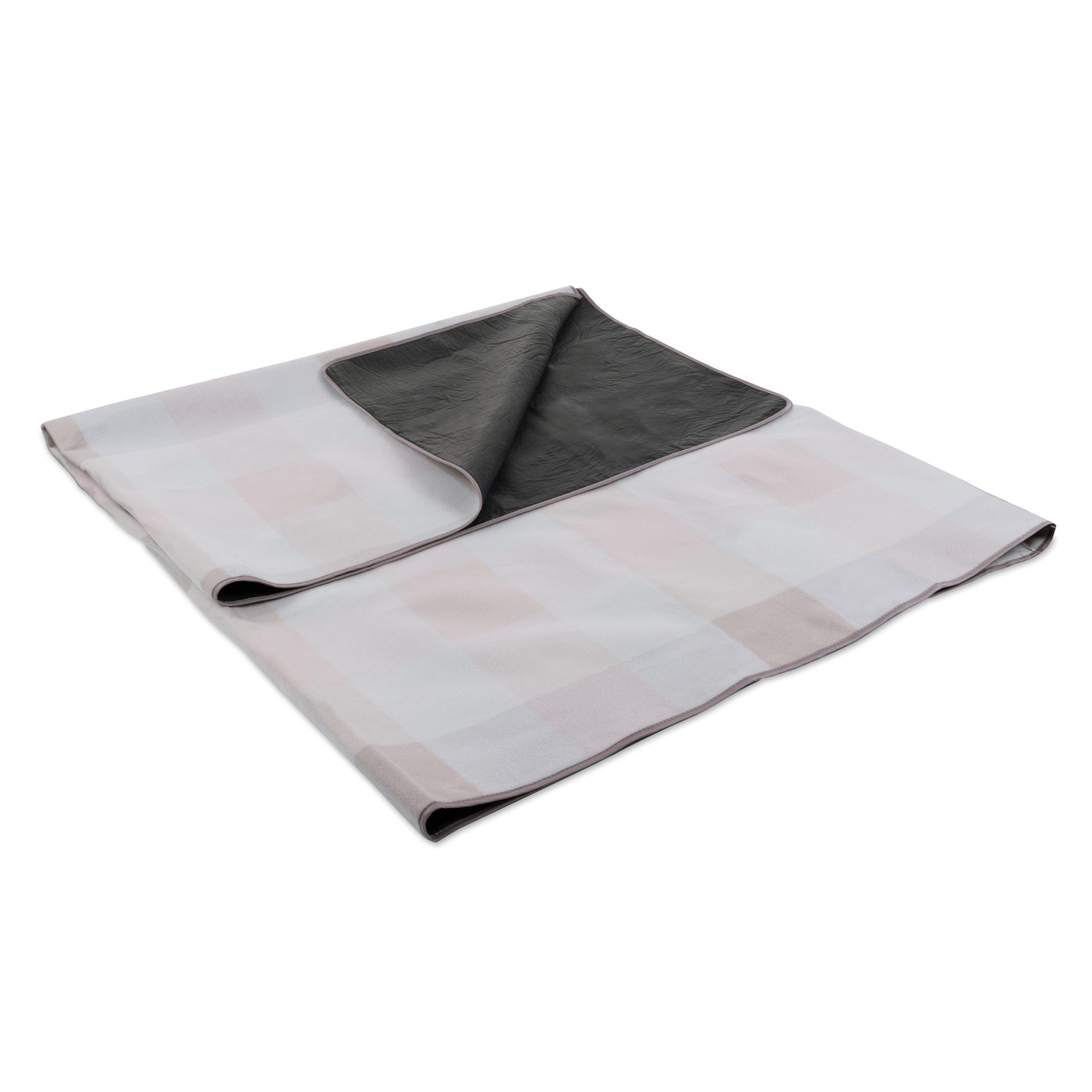 The Blanket Tote XL Outdoor Picnic Blanket is an extra-large portable camping blanket with soft fleece topside and water-resistant underside that packs into a compact carry tote.