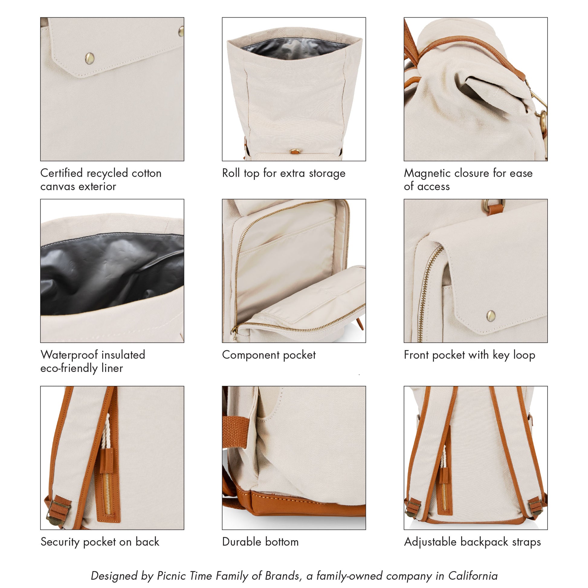 Carmel Roll Top Picnic Backpack Cooler with Components