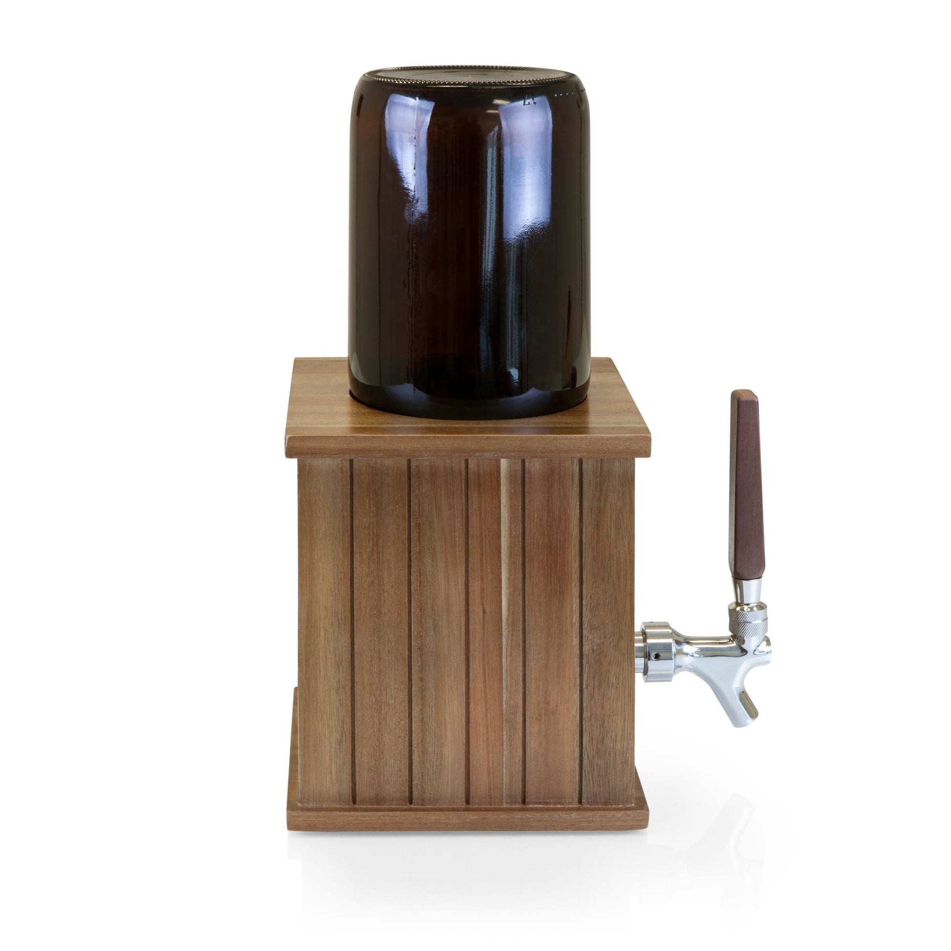 Acacia wood base with 64 oz amber glass growler; Easily disassembles for portability; Chalkboard finished handle and soapstone pencil for customization; Measures 7in x 7in x 15in with growler/ 6in x 6in x 6.5in without growler