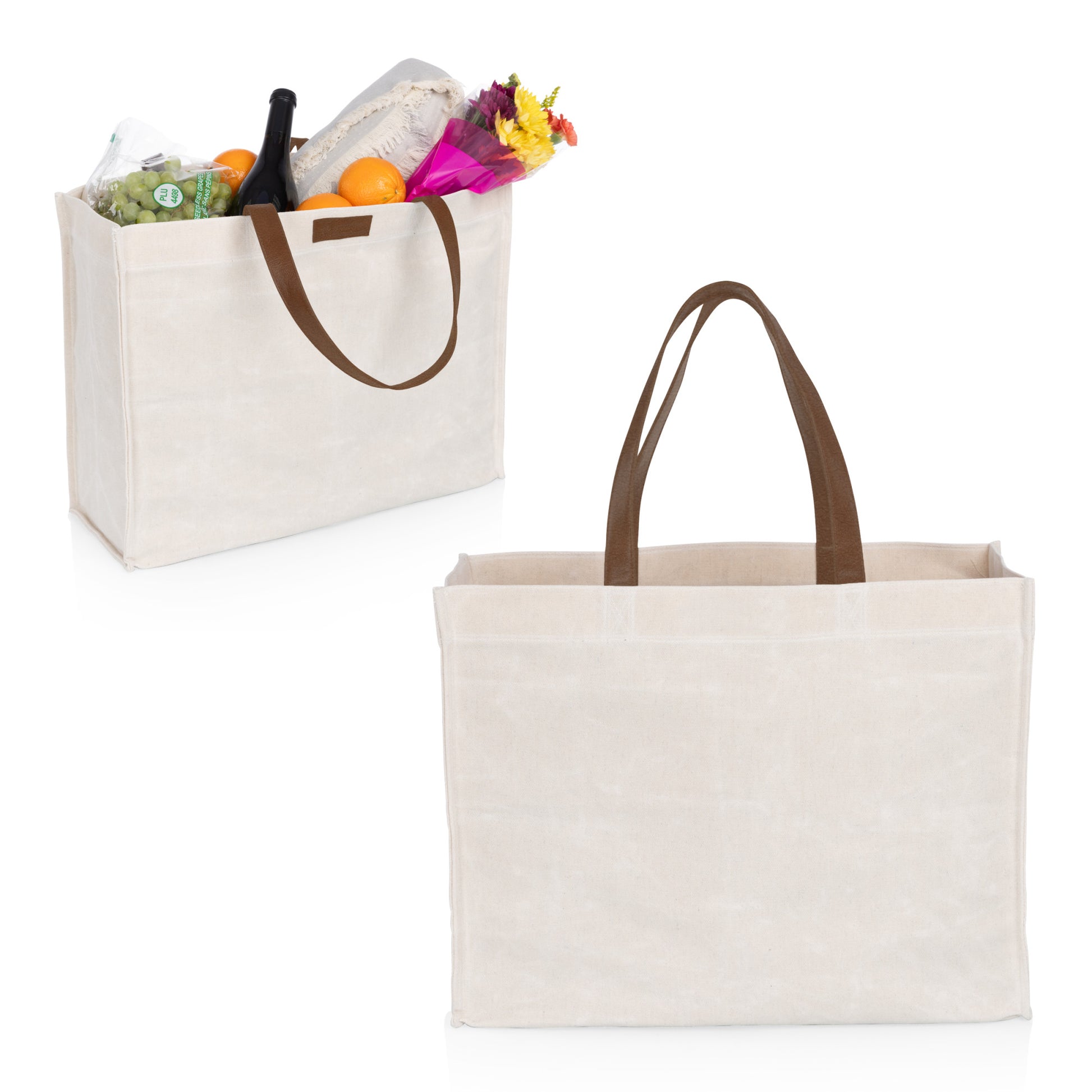 Market Waxed Canvas Tote with Leatherette Handles