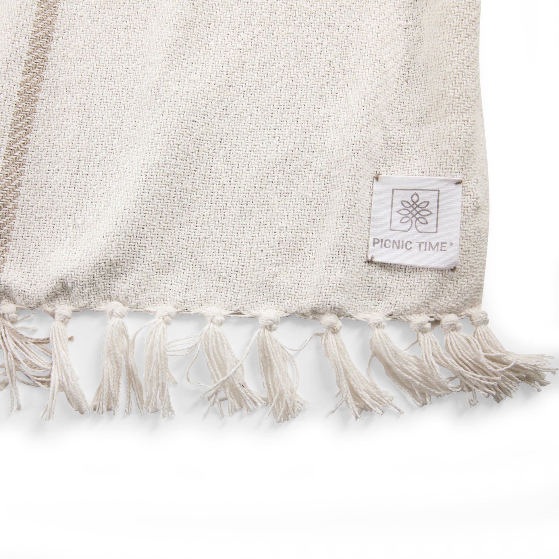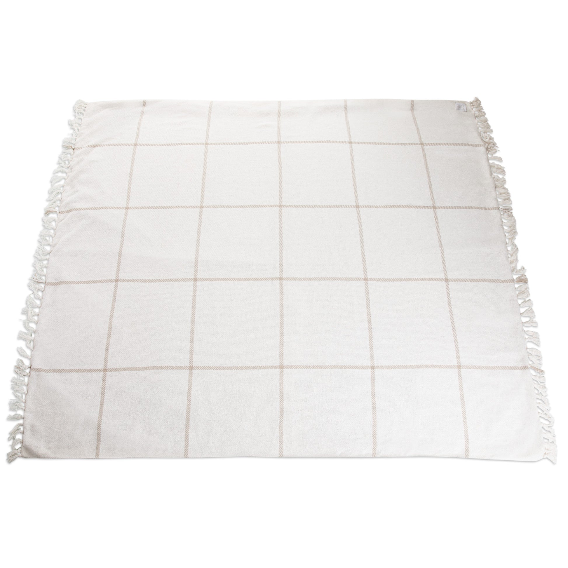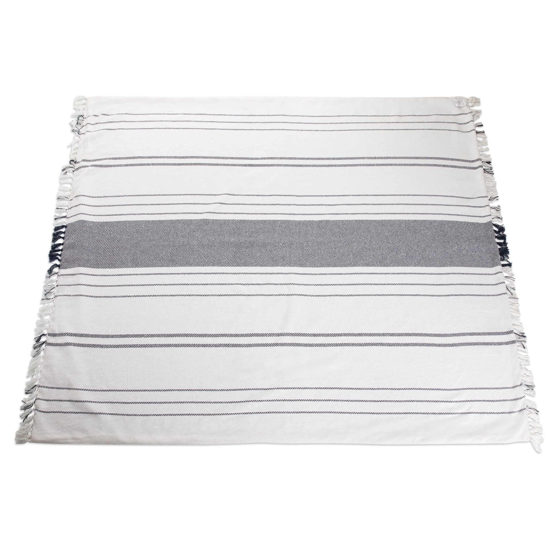 100% woven cotton topside for comfort; Water-resistant, polyester underside for moisture protection; Braided accessory harness with handle for easy transport & storage; 60" x 70" laying flat; Machine washable. Hang dry.
