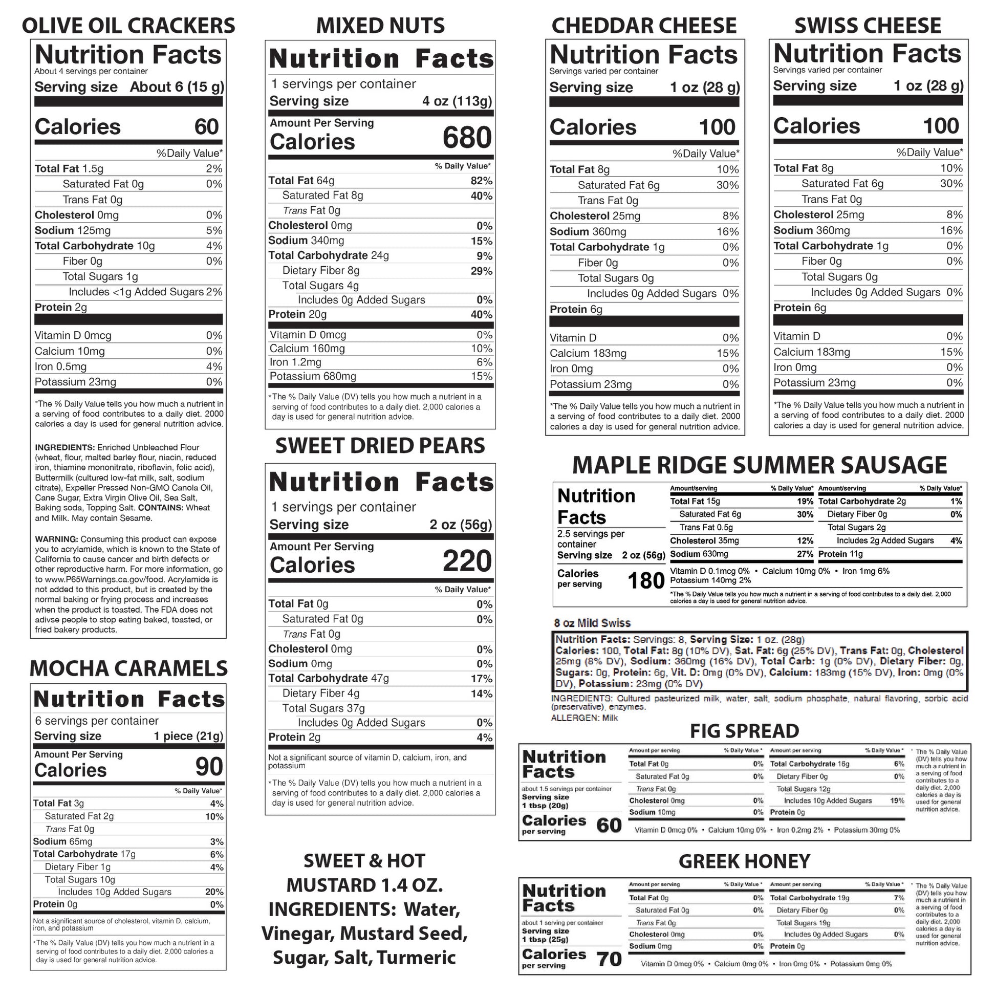 Canvas body with Handwoven wicker bottom; Drawstring closure; 12" x 7" x 12.25"; Insulated; Includes a delightful Gourmet Gift Pack featuring: Maple Ridge Farms - Summer Beef Sausage (5 oz) Northwoods Food and Gift Enterprises - Cheddar Cheese (2 oz) Northwoods Food and Gift Enterprises - Swiss Cheese (2 oz) Maple Ridge Farms - Olive Oil & Sea Salt Crackers (2 oz) Jocelyn & Co - Mixed Nuts (3.75 oz) Maple Ridge Farms - Sweet & Hot Mustard (1.4 oz) Divina - Honey (1.05 oz) Divina - Fig Spread (1.05 oz) Jocelyn & Co - Dried Pear (2.2 oz) Jocelyn & Co - Mocha Toffee (2 oz)