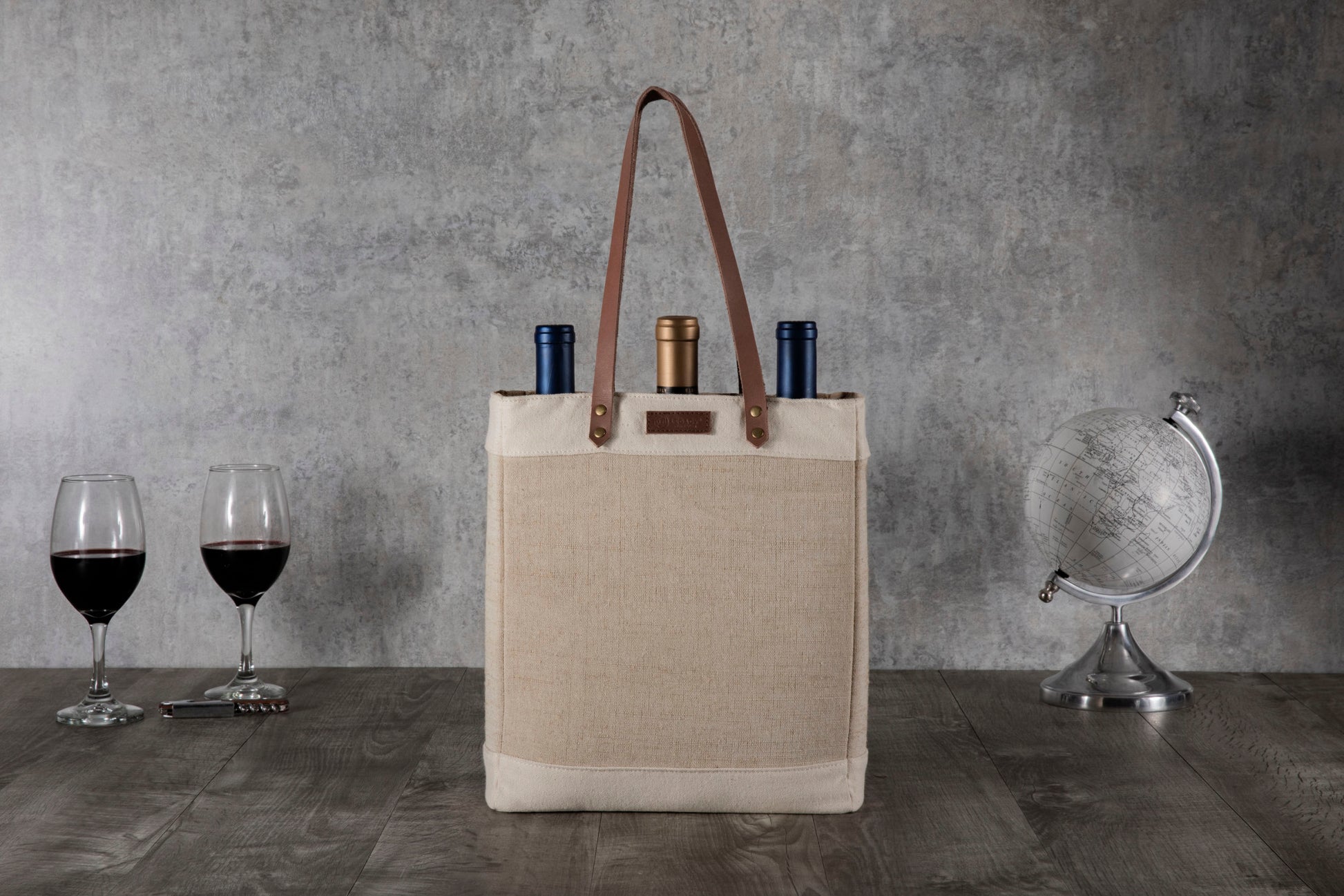 Picture yourself entering the party with three fabulous bottles of wine securely held in this rustic-chic insulated wine tote. It’s a very nice picture.