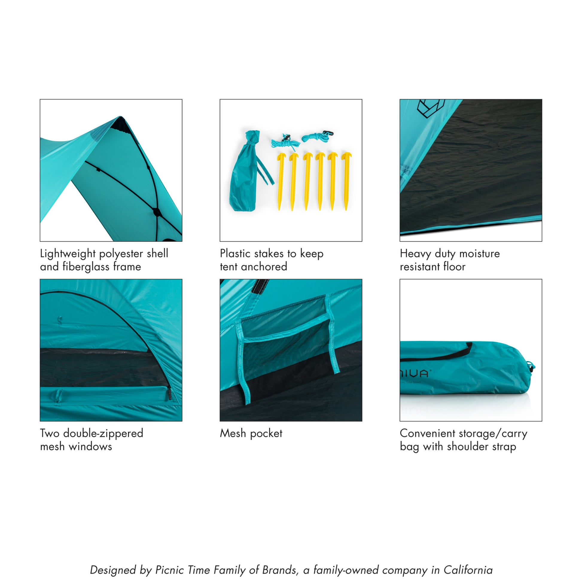 UPF 50+ sun protection rating; Fully-assembled; Easy set-up and take-down; Folds in on itself with the pull of two strings; 2 double-zippered window; Lightweight polyester shell and fiberglass 'wire' frame; Heavy duty moisture resistant floor; Convenient storage/carry bag with shoulder strap