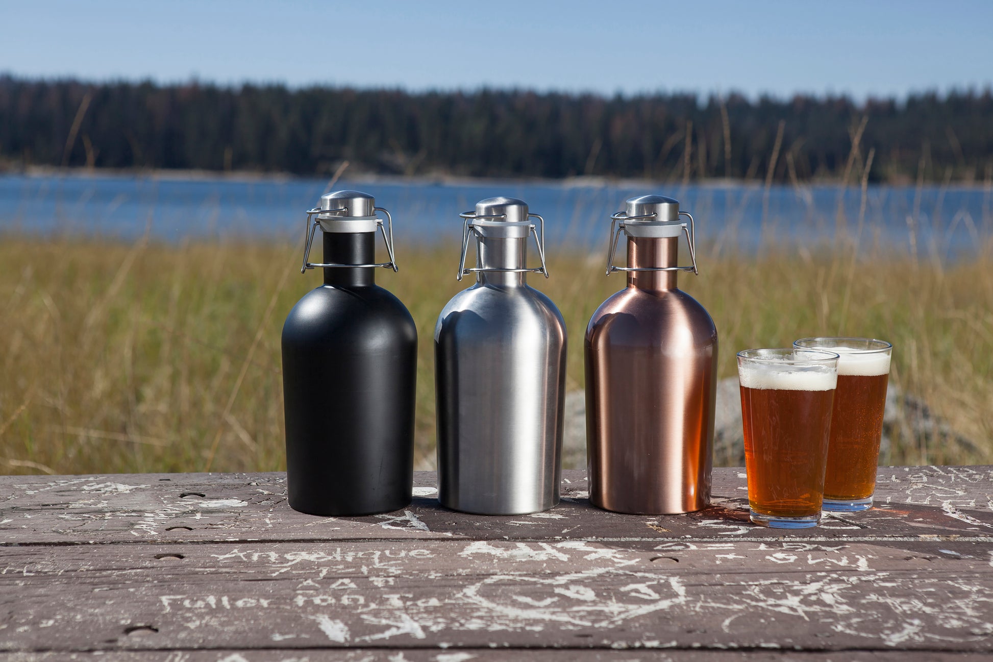 Go boldly down the rugged trail (or pedal across town) with the Stainless Steel 64oz Growler. This insulated vessel keeps the beer cold and the coffee hot. The swing-top lid and silicone seal ensures you won't lose a drop. Plus, it's just fun to hear it go, "Pop!" And it's not only for beer, folks. Kombucha, cold-coffee, water - the growler doesn't mind!