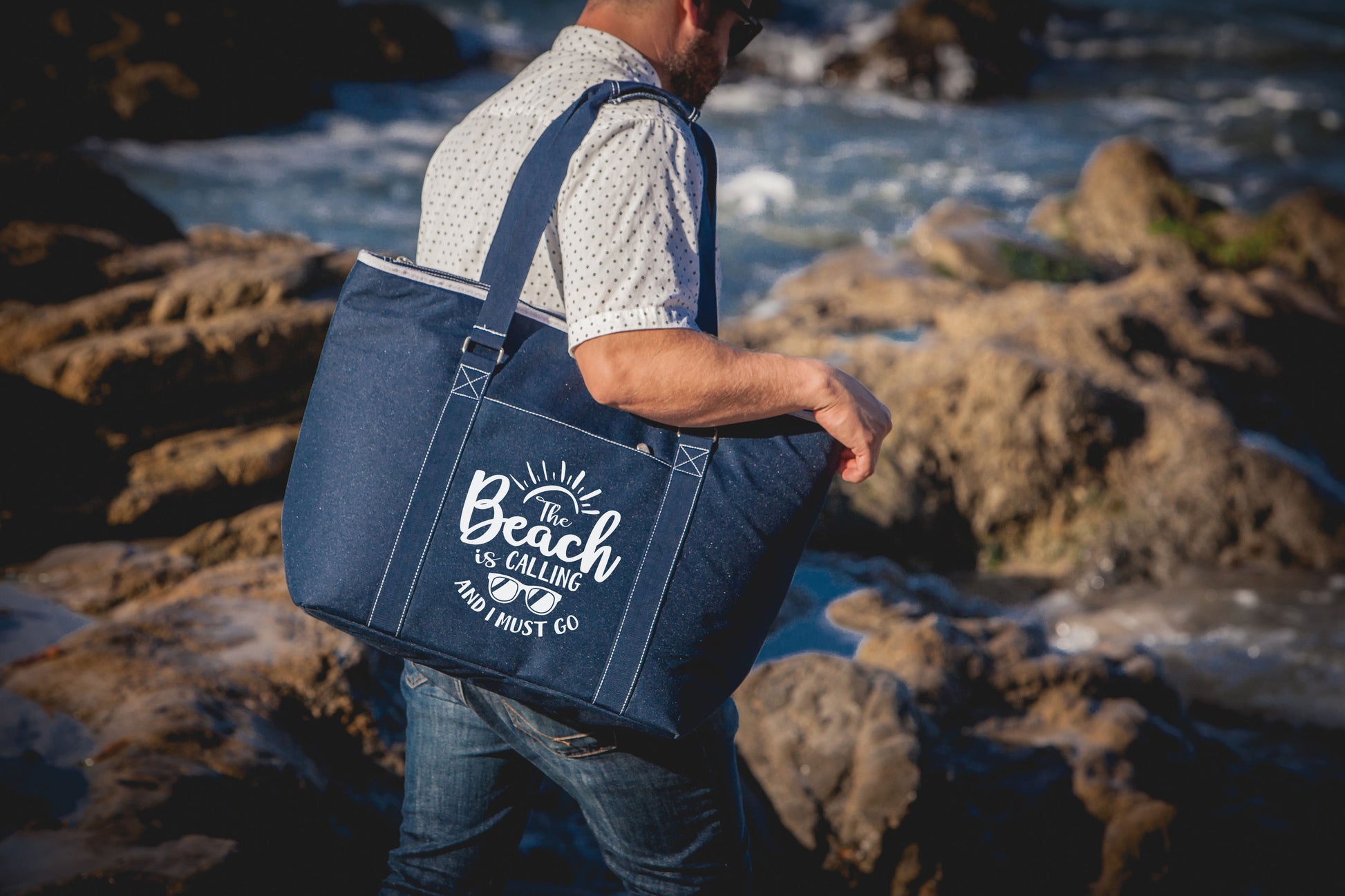 The “The Beach is Calling and I Must Go“ Tahoe XL Cooler Tote is a sleek cooler bag with a spacious 48-can-capacity and a fully-insulated, heat-sealed water-resistant interior liner. Whether you use it as a beach bag, a picnic bag, or a grocery bag, the extra-long shoulder strap and zippered exterior pocket will make sure you get there and back again, in style!
