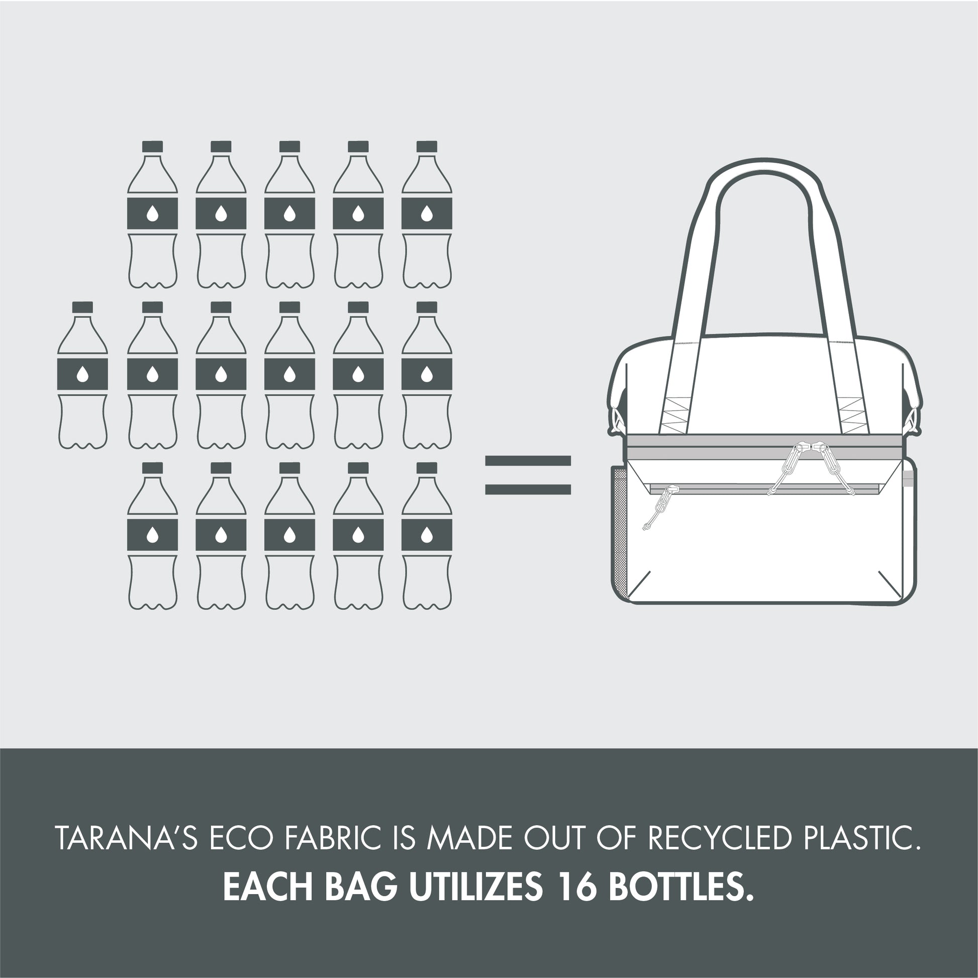 Taking your lunch break feels good, but knowing you’re doing a small part to help protect the planet every time you sit down to lunch? That feels great! With a shell made from 16 recycled water bottles, the Tarana Lunch Bag Cooler with Utensils is the perfect personal cooler set. This lunch bag features a water-resistant, easy-clean insulated cooler, expandable upper compartment, versatile shoulder strap, and comes equipped with a water-resistant placemat, recycled plant fiber utensils, and a reusable metal straw.