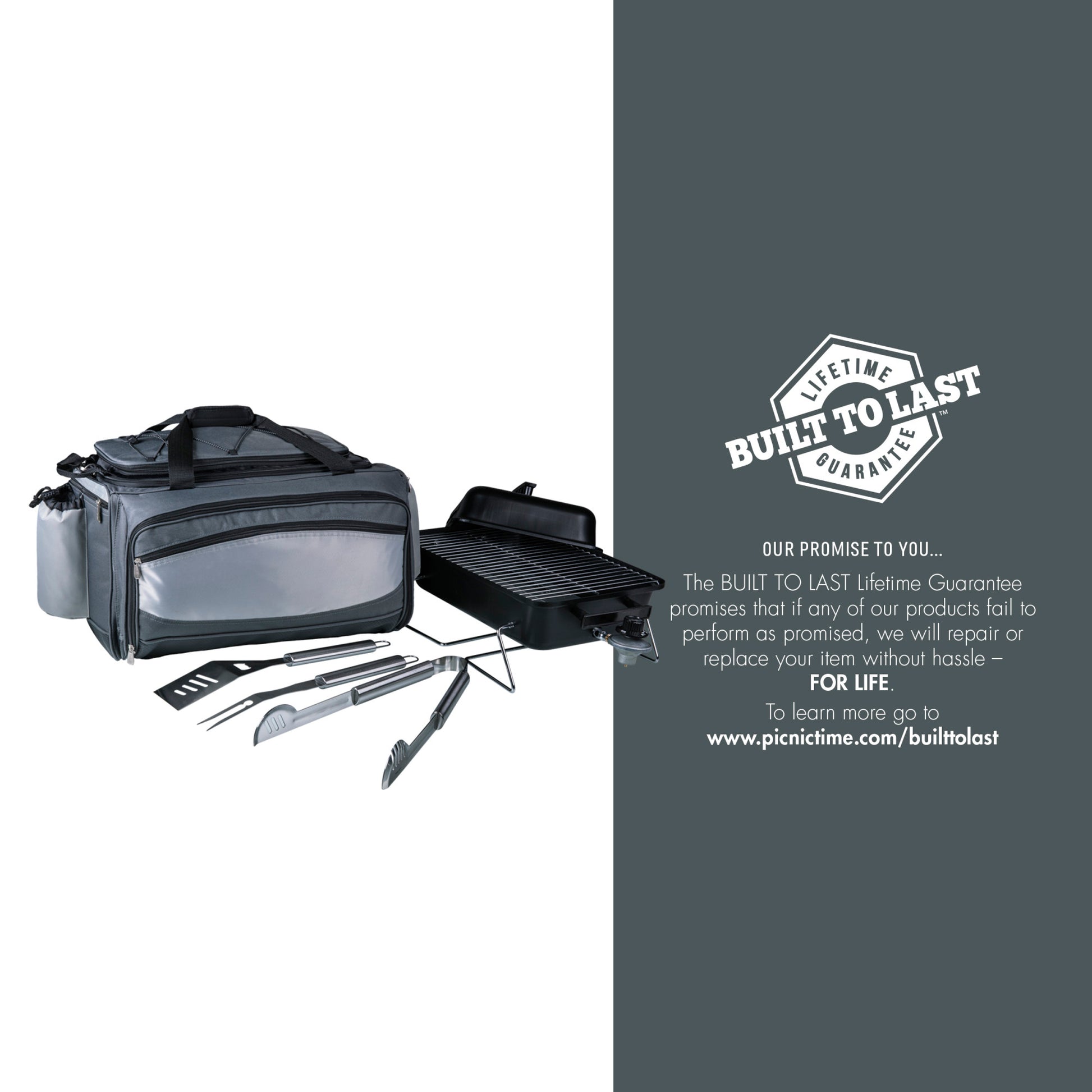 Picnic Time is proud to introduce our patented Vulcan Portable Propane Grill & Cooler Tote, a travel grill set and insulated cooler in one! this BBQ kit will win the tailgate party, hands down!